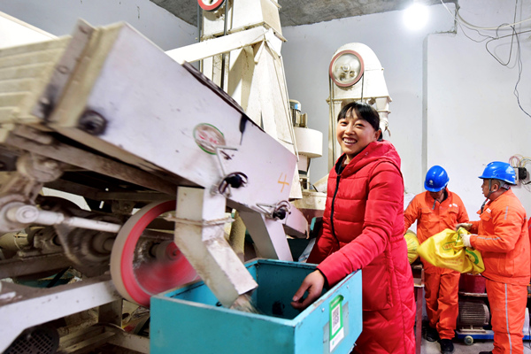 1月15日,酉陽花田鄉何家巖村村民用上了移動儲能車發的電打米,電壓更穩,電力有保障,村民笑開顏。陳碧生攝