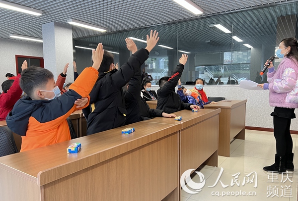 人民網重慶1月19日電 (胡虹)“這題我會!”一雙雙小手爭先恐后舉得高高的,稚嫩的臉上自信滿滿,現場比賽氛圍濃厚。正值寒假期間,重慶市沙坪壩區雙碑街道為推動生活垃圾分類工作,加強轄區內居民和學生學習垃圾分類知識,樹立環保意識,19日,雙碑街道在自由村便民服務中心開展“小手拉大手·小家傳大家”垃圾分類有獎知識競賽,小朋友和大人們積極報名、答題踴躍,現場氣氛熱烈。