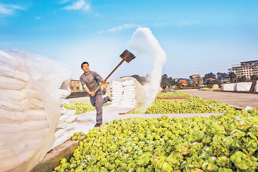 涪陵區江北街道二渡村村民處理收獲的青菜頭。(資料圖片)張政 攝/視覺重慶