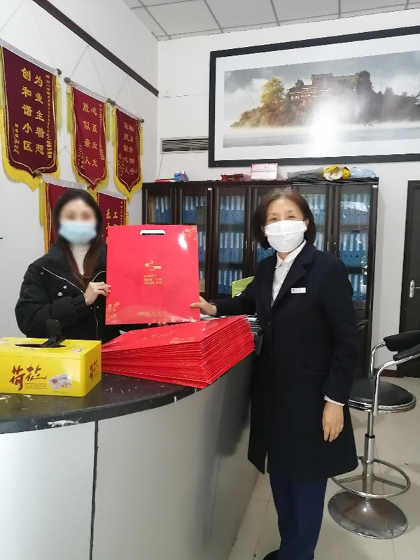 工作人員上門為社區群眾送春聯窗花、講解金融知識。交行重慶市分行供圖