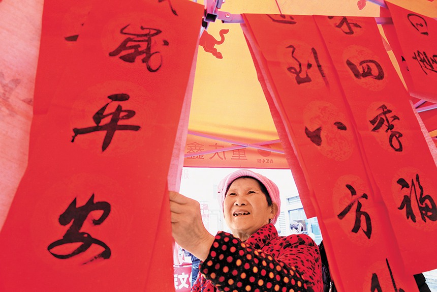當天,黔江區書法家協會會員來到安置點,開展“‘我們的中國夢’——文化送萬家·春聯送社區”活動,現場為搬遷戶免費書寫春聯,送上新春的祝福。特約攝影 楊敏/視覺重慶
