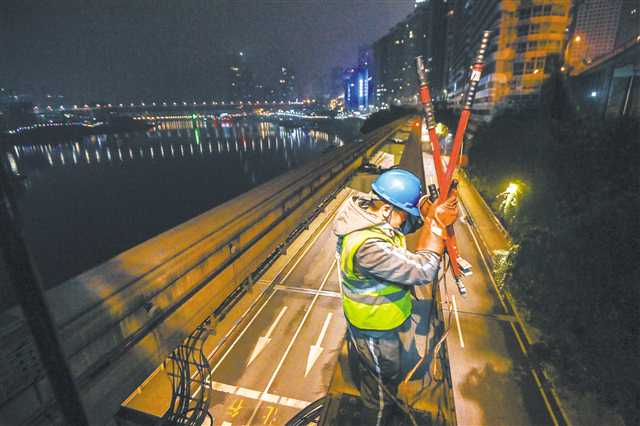 1月24日0點34分,重慶日報記者來到位于九龍坡區的重慶軌道交通大堰綜合基地。此時,檢修工張成西與茍飛、李佳鑫組成的巡線班組已經收拾好東西,整裝待發。