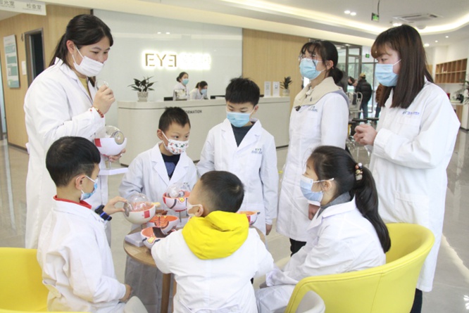 科普志愿者給小朋友講解眼健康知識。愛爾眼科重慶南坪醫院供圖