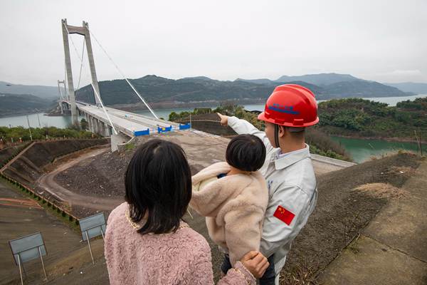 人民網重慶1月28日電 快到項目部了,峰回路轉,屹立于大江之上的新田長江大橋,以莊嚴巍然的姿態躍入視線!皹窐,快看大橋,好看吧!”從老家湖南郴州連續驅車十來個小時的黃超前,激動地對著后排座的女兒說著,一路的疲憊仿佛煙消云散。