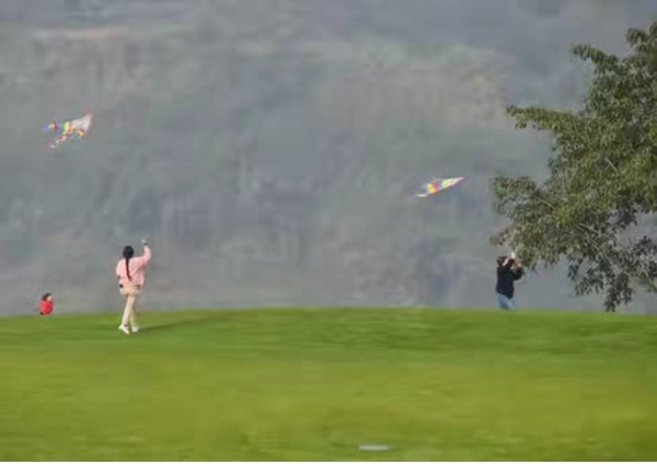 市民在廣陽島上放風箏。郭旭攝