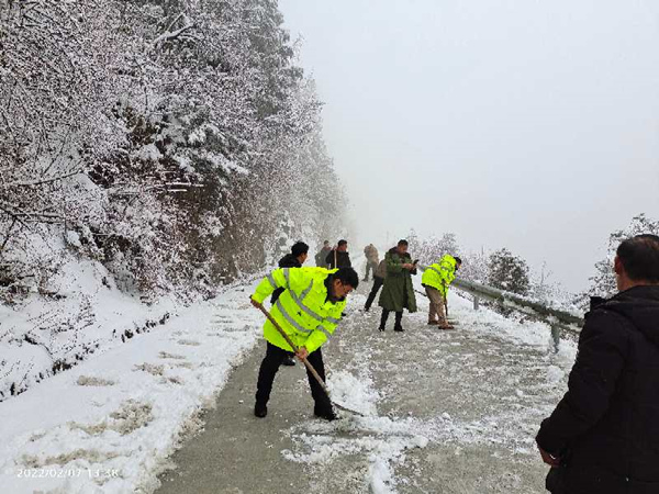 人民網重慶2月8日電 2月8日,春節后上班第二天,也是務工村民集中外出的日子,通城鎮下起大雪,黨員干部迅速分赴村社道路,鏟雪為他們安全出行護航,并指導在家村民科學防災,抓好春耕生產。