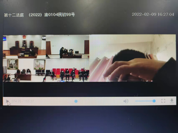 打電話的杜先生是一起勞務糾紛的當事人。2月9日下午3時,在大渡口區法院十二法庭,原本應該出現在被告席的杜先生因為疫情等原因,選擇了通過網上視頻應訴,而承辦該案的法官曾繼川依照程序主持調解。