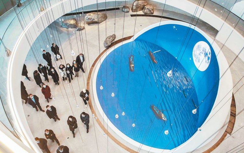 寸灘國際新城·構象臺內部分3層,一層為寸灘片區歷史文化和寸灘國際新城規劃展示區,二層為沉浸式體驗區,三層為多功能廳。各區域充分運用聲、光、電、機械、數碼、信息、多媒體和網絡等手段,并巧妙設計獨特的懸空步道,營造獨特的參觀體驗。