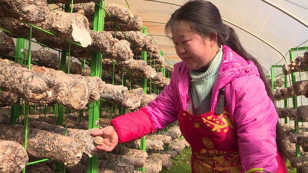 村民朱蘭蘭正在采摘香菇。徐壇攝