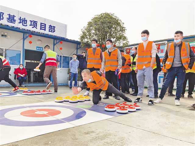2月15日,重慶市悅來中心(會展總部基地)項目工友村十分熱鬧。悅瑞文旅與中建八局聯合舉辦的“攜手同行 悅來越好”鬧元宵活動在此上演。由于元宵節恰逢北京冬奧會,活動主辦方還特別設置了旱地冰壺游戲,工友們配合默契,玩得有模有樣。