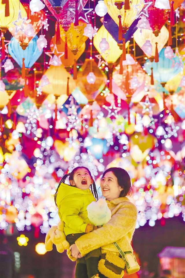 2月14日,游客在綦江區東溪鎮觀賞花燈。通訊員 王京華 攝/視覺重慶