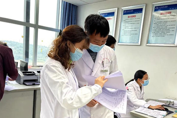臨床藥師協助醫生識別藥物不良反應。重慶大學附屬江津醫院(江津區中心醫院)供圖