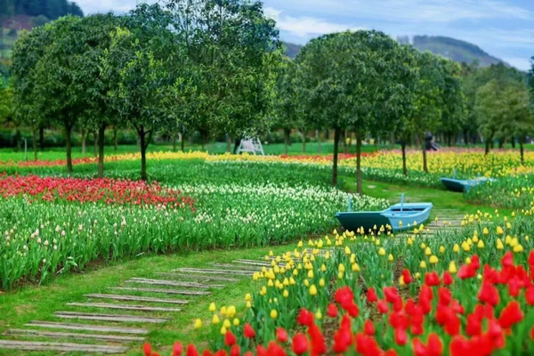 太寺埡森林公園位于沙坪壩區中梁山鎮,公園從荷蘭引進了100萬株高品質郁金香,栽種面積達200余畝,包含了荷蘭美人、法國之光、王朝、狂人詩、紅燈籠、人見人愛、寶石之光等80余個品種。 漫步園內,各色的郁金香層層疊疊在園中鋪開,一朵朵郁金香紅似火,粉賽桃,紫若蘭,讓人目不暇接。