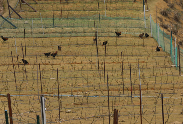 今年,美心紅酒小鎮又在梨香社區6組流轉200畝土地種植釀酒葡萄。眼下正在進行土地整治、開溝等前期種植準備工作,預計在3月20日前完成種植!傲⒆戕r業產業的基礎上還規劃推進一產和三產的融合,在葡萄園搞觀賞與銷售一體的高標準復合種養模式,在葡萄園里試點‘溜達雞’產業,再加上我們定價比較便宜,春節期間吸引了很多游客購買,衍生的鐵鍋柴火雞也成為特色餐飲項目,下一步將考慮注冊商標品牌運營!备缎④娬f。