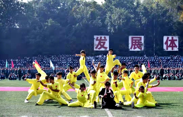 運動會開幕式的武術表演。江北中學供圖