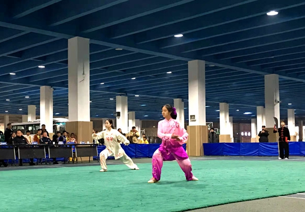 學校武術代表隊隊員在比賽中。江北中學供圖