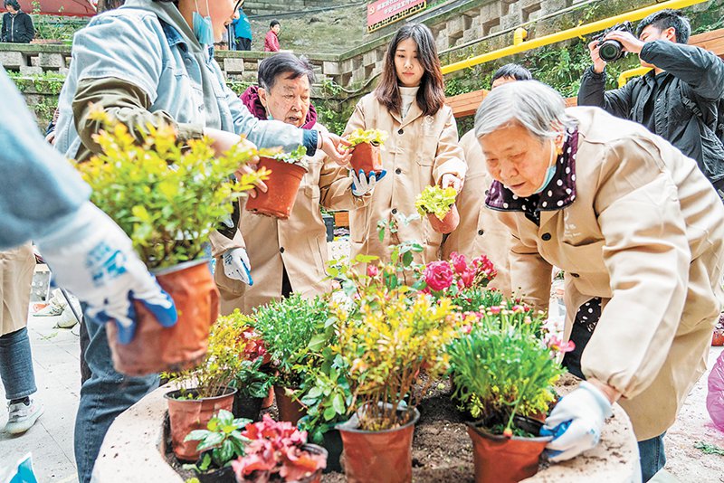 居民和志愿者一起動手,打造自己心中的社區花園。記者 崔力 攝/視覺重慶