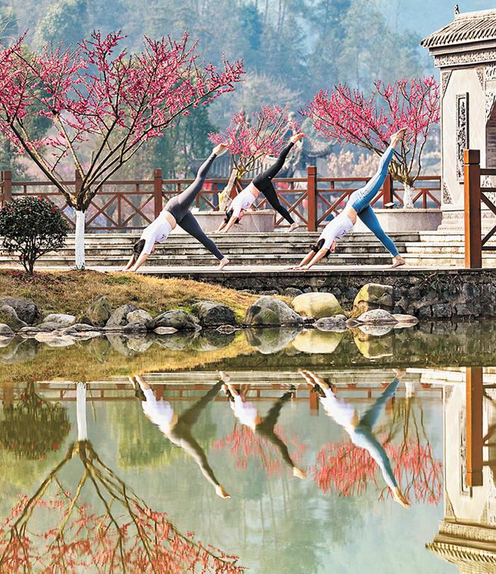 2月27日,南川區大觀鎮梅華園,市民在練瑜伽。通訊員 羅川 攝/視覺重慶