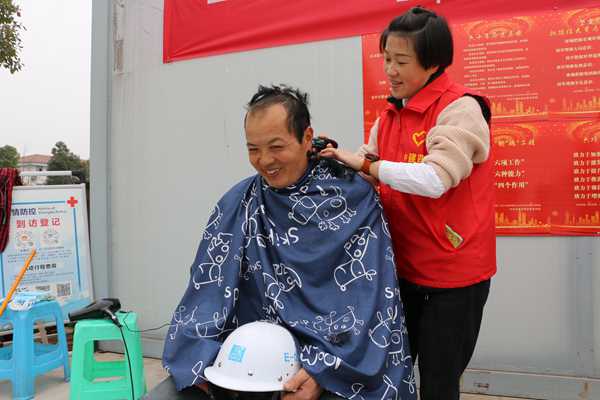 “頭發剪了整個人都精神了,我們這里有點偏,這樣的免費理發既省了時間,也節約了錢,真好!”鋼筋工潘承忠摸摸新剪的頭發滿意的說。(劉政寧、陳萌)