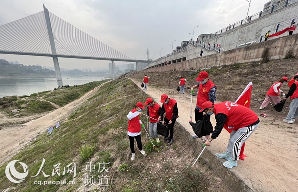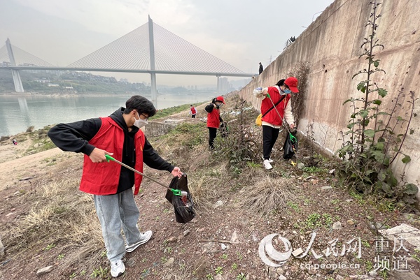 人民網重慶3月5日電 (胡虹)為積極推進生活垃圾分類工作,提高轄區居民生活垃圾分類的主動性和自覺性,深入推進“河長制”工作,4日下午,在第59個“學雷鋒紀念日”來臨之際,沙坪壩區雙碑街道組織開展守護綠水青山,締造美麗山城垃圾分類暨“河長制”(禁漁)主題活動,組織街道機關、社區工作人員,雙碑派出所民警,垃圾分類指導員,西南醫院志愿者,紅巖志愿者,“河小青”志愿者,在雙碑街道轄區內嘉陵江沿岸進行拾撿垃圾,以及向居民宣傳“十年禁漁”保護生態環境。