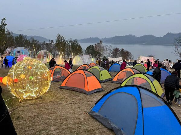 游客在長壽湖露營基地玩耍。蔣海濤攝
