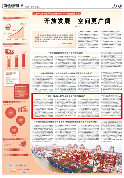 “總書記要求重慶加快建設內陸開放高地。近幾年,重慶市出臺一系列對外開放支持政策,我們深受鼓舞,積極把握內陸開放高地建設的重大機遇!睆埮d海代表說。