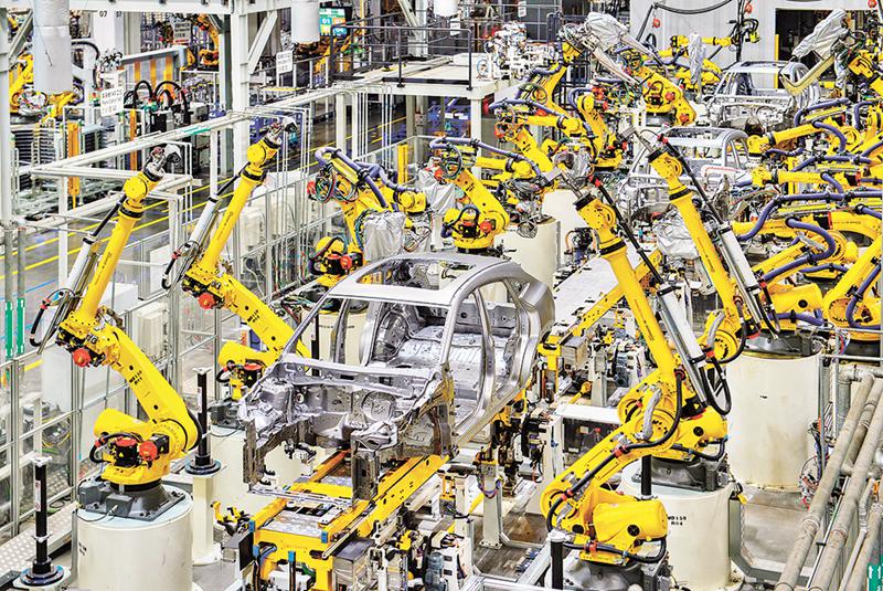 重慶金康兩江智能工廠焊裝車間,機器人有條不紊地在生產線上忙碌。 (資料圖片)記者 張錦輝 攝/視覺重慶