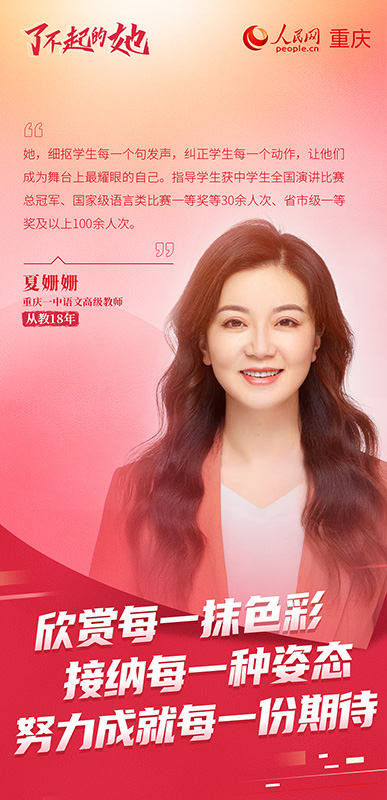 山河闊遠,映佳人芳華;歲月悠長,展卓然風姿。值此“三八”國際勞動婦女節來臨之際,人民網重慶頻道推出“了不起的‘她’,值得被看見”特別策劃,透過每一份蓬勃生長的“她”力量,展示重慶這座城市各種工作領域的女性風采,致敬了不起的“她”。(胡虹、向詩佳)