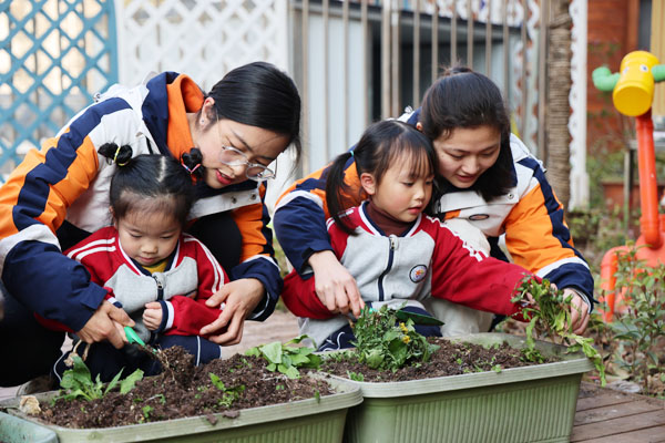 老師帶領孩子們一起認識中草藥。朝陽幼兒園供圖
