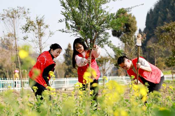 人民網重慶3月11日電 3月11日,重慶市黔江區水田鄉黨員干部、區法院干部職工、志愿者等120余人,在水田鄉紅豆杉長壽文化園開展義務植樹活動,為大地添新綠。