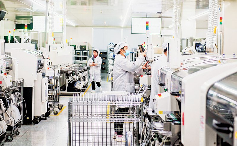 3月8日,江北區港城工業園延鋒偉世通(重慶)汽車電子有限公司生產車間,工人正在對智能化生產設備巡檢。