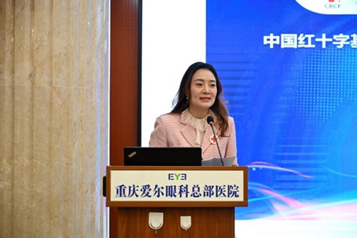 中國紅十字基金會賑災發展部副部長廖玲線上致辭,她強調,眼健康是國民健康的重要組成部分,兒童青少年近視問題引起了全社會的關注?!凹t十字愛眼護眼工程”在重慶市得到了重慶紅十字會、紅十字基金會和重慶愛爾眼科醫護團隊的支持,希望通過項目的實施,讓偏遠鄉村小學生受益,降低近視發病率,保護兒童青少年眼健康。