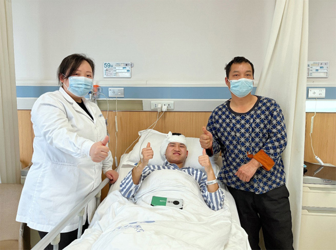 2021年底,張朝梅團隊為周中武右側做了電子耳蝸植入術,“春節后復診做開機測試,他已經能夠分辨雙音詞組及簡單短句,耳蝸植入手術效果良好!睆埑氛f,接下來,患者需要繼續進行聽覺言語康復訓練,逐漸適應日常的各種聲音。