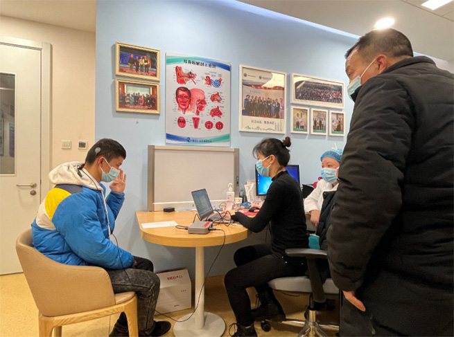 周中武和爸爸多方打聽來到了重慶仁品耳鼻喉醫院,急切地想找回丟失的聽力。張朝梅為其進行了非常詳盡的聽力檢查,“他所罹患的是雙耳極重度感音性耳聾(語后聾),原因是那一次腦部感染!