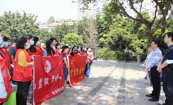 人民網重慶3月16日電 “今天你們身穿紅巖志愿者的服裝,即將奔赴戰疫一線,大家要服從組織,聽從安排,展現好童家橋人的擔當和風彩!3月15日,在重慶市沙坪壩區紅巖魂廣場上,一抹鮮亮的紅色,熠熠奪目。