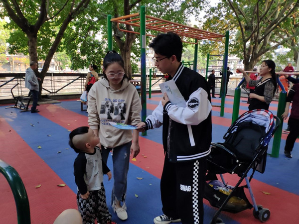 “節水護水很重要,餐廚臟物綠桶倒!薄巴蹬磐档故沁`法,警察抓住要受罰!痹阼的虾雍拥、沿線橋梁、廣場等地,志愿者用自編說唱的方式向過往行人宣傳水資源保護、水生態循環、水污染分類、節水小竅門以及河流保護相關政策。