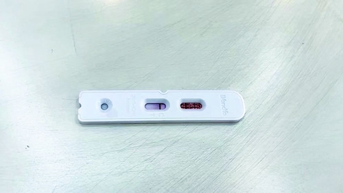 記者購買到的新冠病毒抗原檢測試劑以及自檢結果。