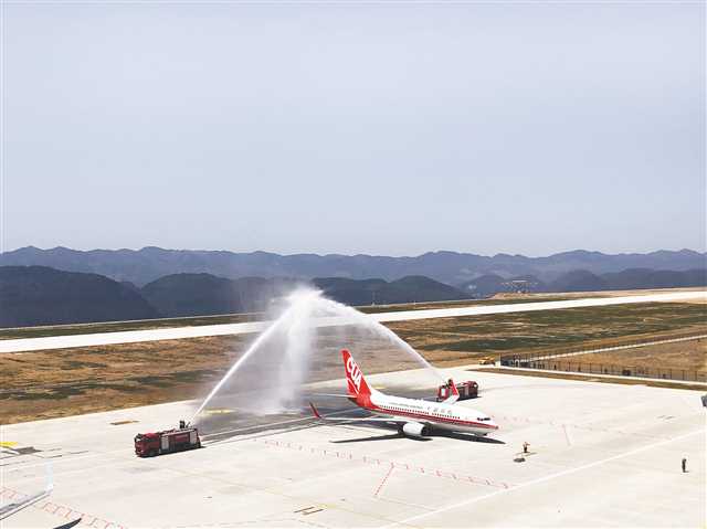 武隆仙女山機場降落的航班受到“過水門”的禮遇。(本報資料圖片)(武隆區委宣傳部供圖)