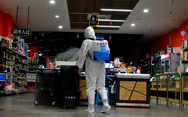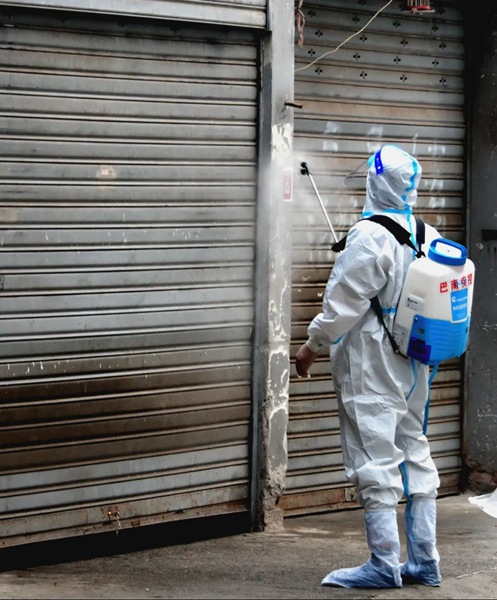 “消殺工作看似簡單,但責任重大,必須仔細仔細再仔細!苯鸾B初背上沉甸甸的噴霧器,從上到下,從左到右,由內而外,有序對每一處區域進行消毒處理。