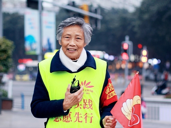費敏秀,大家叫她“費婆婆”,今年85歲,是渝北區最年長的交通勸導志愿者,也是一名有著63年黨齡的老黨員。她說:“壽命用年齡計算,人生價值用奉獻計算!