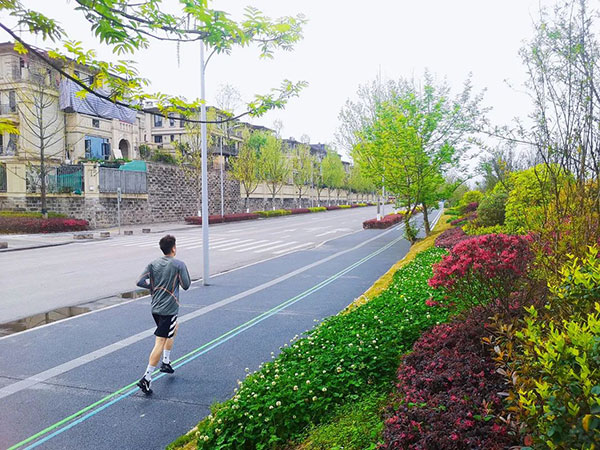 濱江步道的禮義路段,市民正在跑步。中建科工供圖