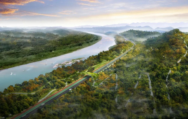 廣陽大道全長約13.1公里,全線串聯規劃的蘭草溪民宿風情帶、峽口休閑小鎮、廣陽灣生態產業總部、巴渝鄉愁體驗園、會議酒店、生態文明學院、廣陽島生態環保創新基地等七個重大功能設施區。