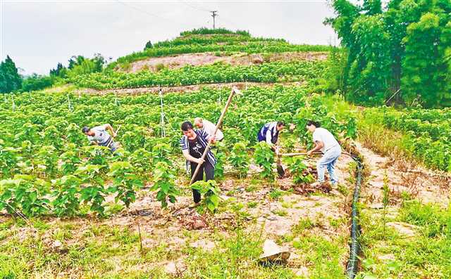 三月二十五日,大足區中敖鎮觀寺村,村民們在桑樹基地里進行管護。記者 顏安 攝\視覺重慶
