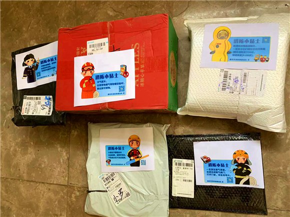 “天氣變冷,在使用電暖器等取暖設備時,要遠離可燃物”“不要在樓梯間、房間內給電動車充電,電池老化要及時更換”,在江津鳳凰路菜鳥驛站49號店里,堆積如山的快遞包裹上均張貼上了消防宣傳提示標語,最大限度地引起老百姓關注,讓大家切實感受到消防安全與自己生活的方方面面息息相關。(通訊員 田園)