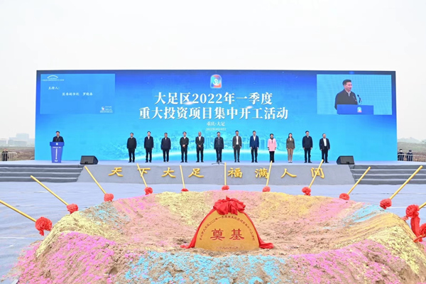 3月30日,大足區舉行一季度重大投資項目集中開工活動。此次集中開工的55個項目總投資200億元,涵蓋產業、交通、教育、文化旅游、生態環保等方面。