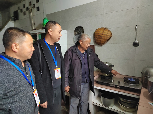 鎮村人大代表入戶查看天然氣使用情況。隆盛鎮供圖
