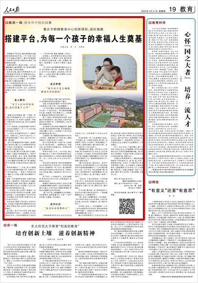“每個孩子身上都蘊藏著無窮的潛能。學校要做的,就是搭建平臺,為每一個孩子的幸福人生奠基!崩铨埫氛f。