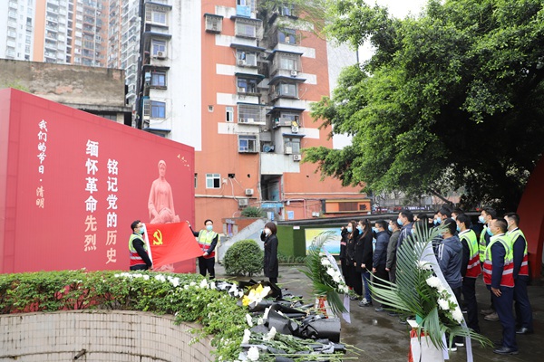 當天,來自中建八局大田灣體育場保護與利用項目黨支部、中共重慶市城市建設投資(集團)有限公司機關二支部及中共重慶園林綠化建設投資(集團)有限公司(城市更新公司)委員會的20余名黨員代表來到烈士墓,為烈士們敬獻了花籃和鮮花,并重溫了入黨誓詞。