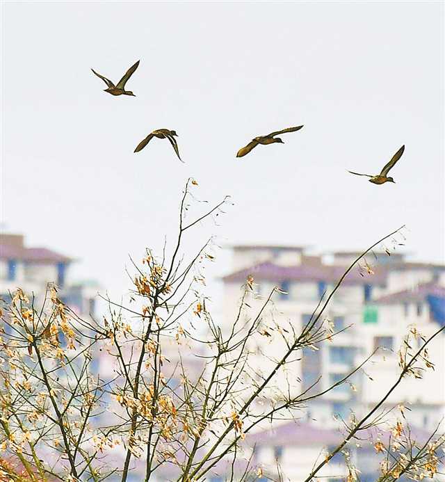 不僅僅是斑嘴鴨,如今在雙桂湖棲居的各種鳥禽類已達到200多種:中華秋沙鴨、青頭潛鴨已連續多年到雙桂湖越冬;39年后再次現身重慶的灰雁,也選擇雙桂湖落腳......