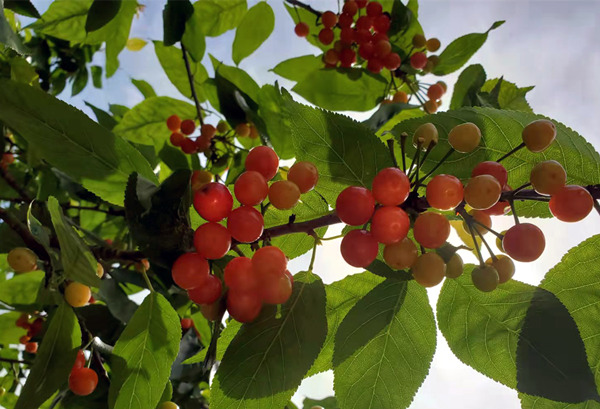 據了解,玉峰山櫻桃品種為本地小櫻桃,得益于土壤、溫差、水源等得天獨厚的自然條件,櫻桃濃濃的甜味和輕微的果酸味口感深受市民游客的喜愛。當地櫻桃種植規模逐年擴大,從胡家溝蜿蜒上山,櫻桃基地規模已達上千畝。